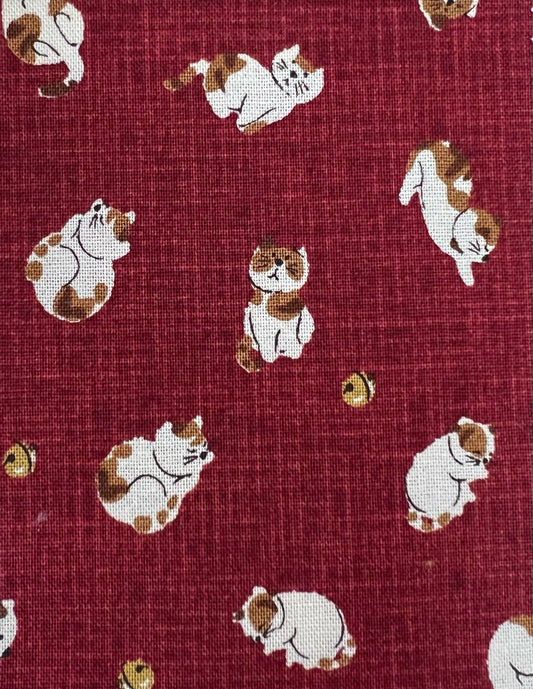 Japanese Zabuton Floor Pillow Cats Burgundy