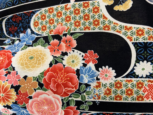 Japanese Zabuton Floor Pillow Floral Black