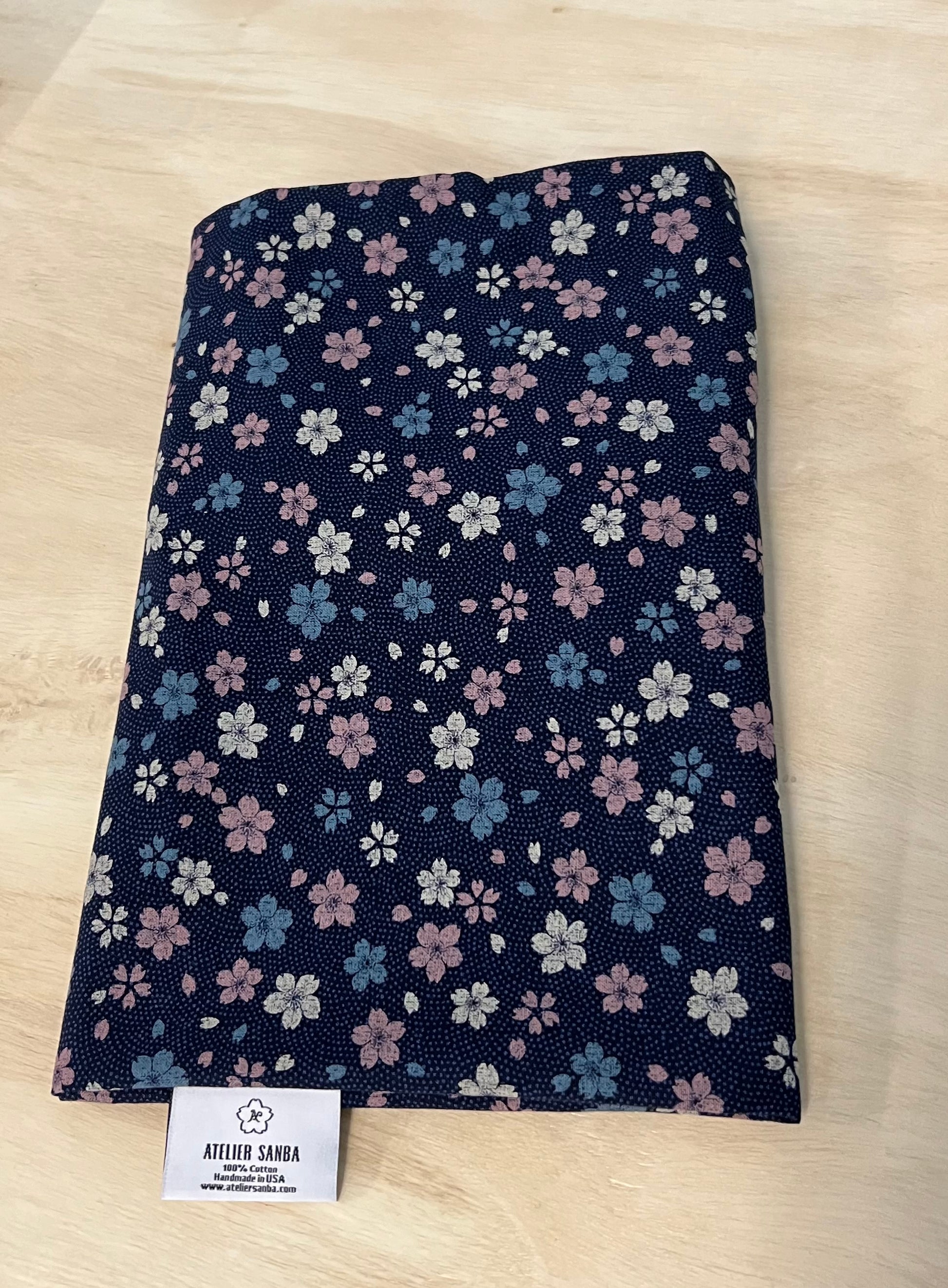 Handmade Cotton Futon w/Removable Sakura Navy Cover. Shiki Futon.