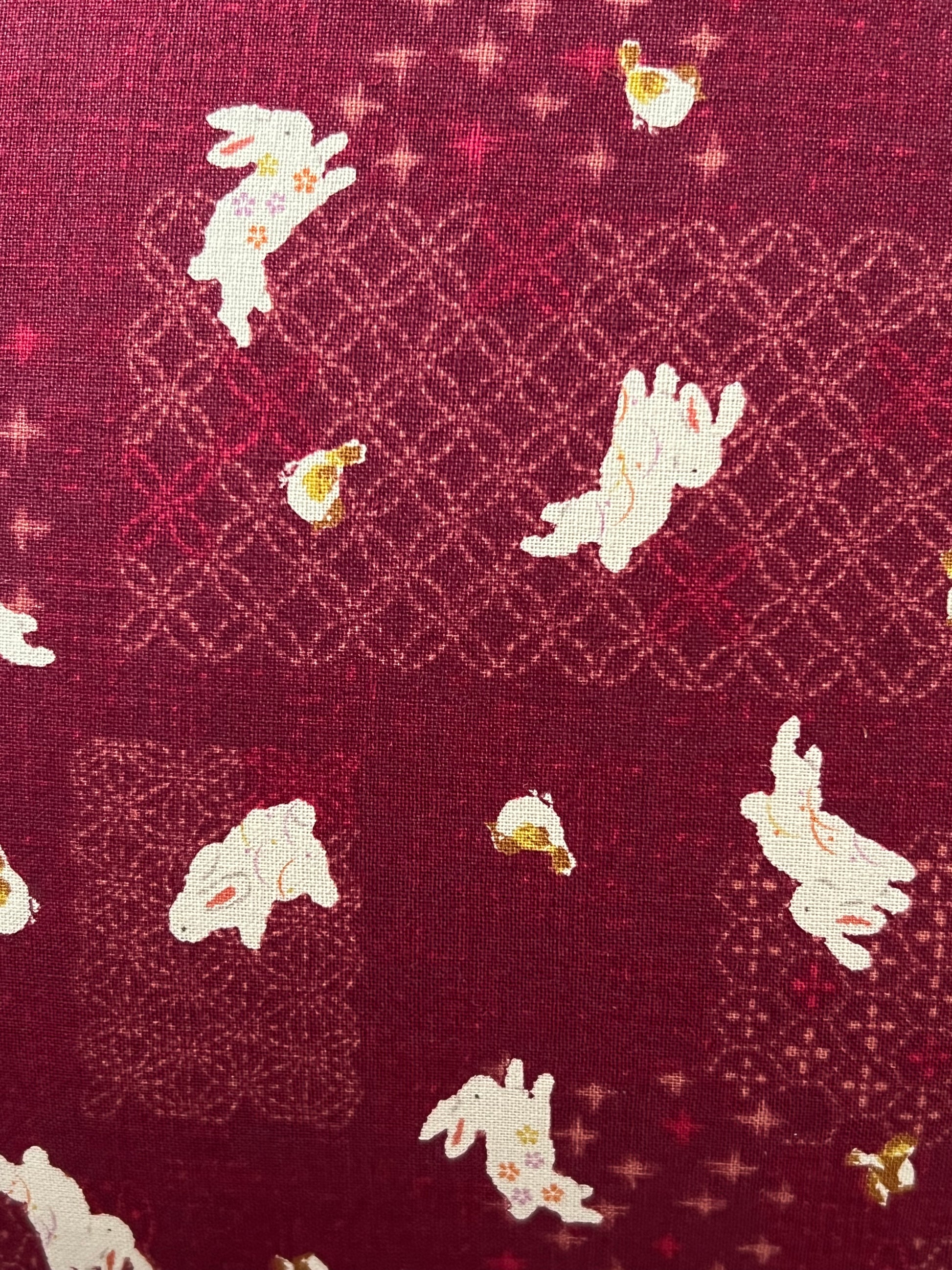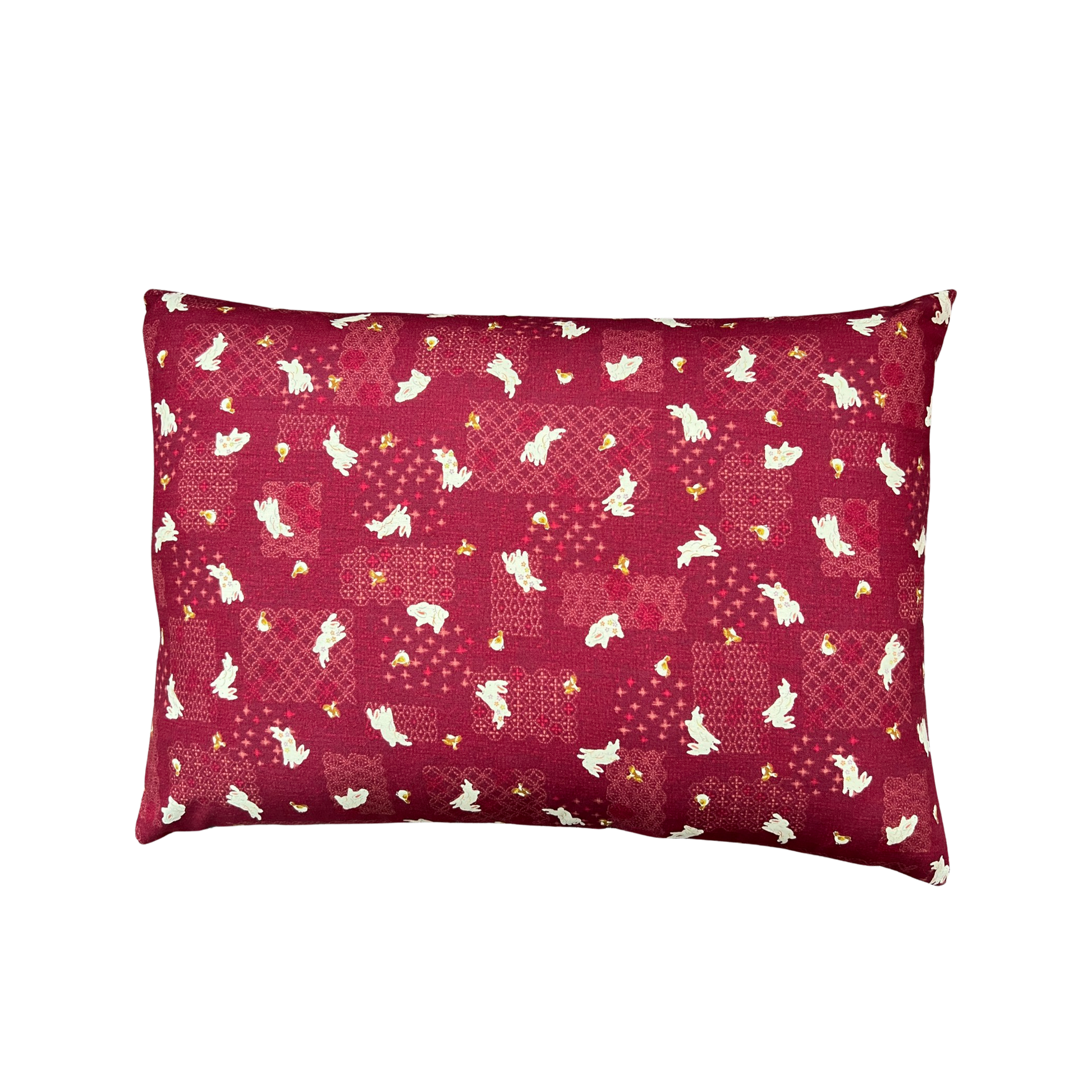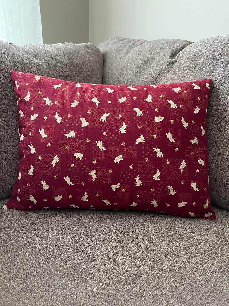 Japanese Bunny Burgundy Fabric Throw Pillow