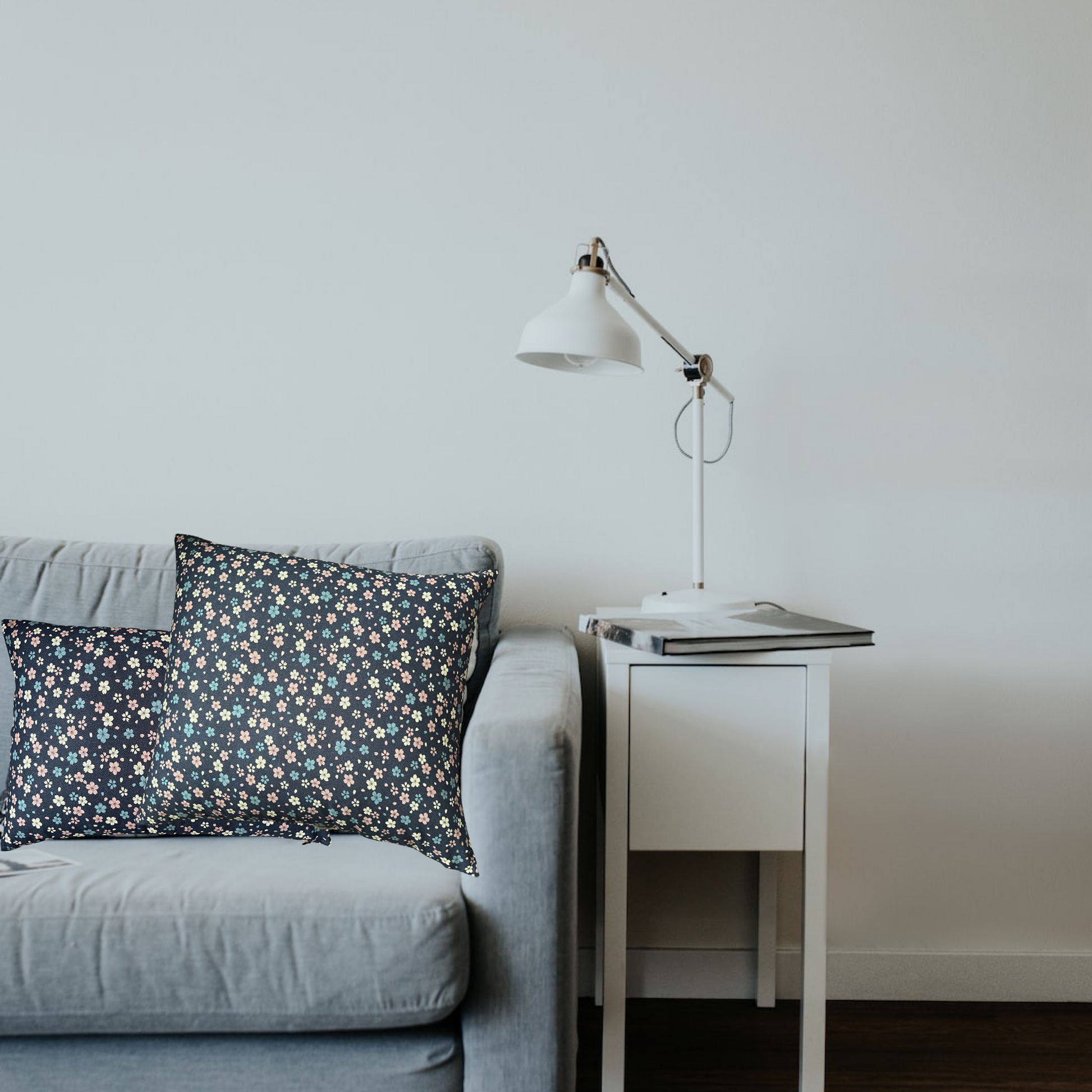 Japanese Sakura Navy Fabric Throw Pillow