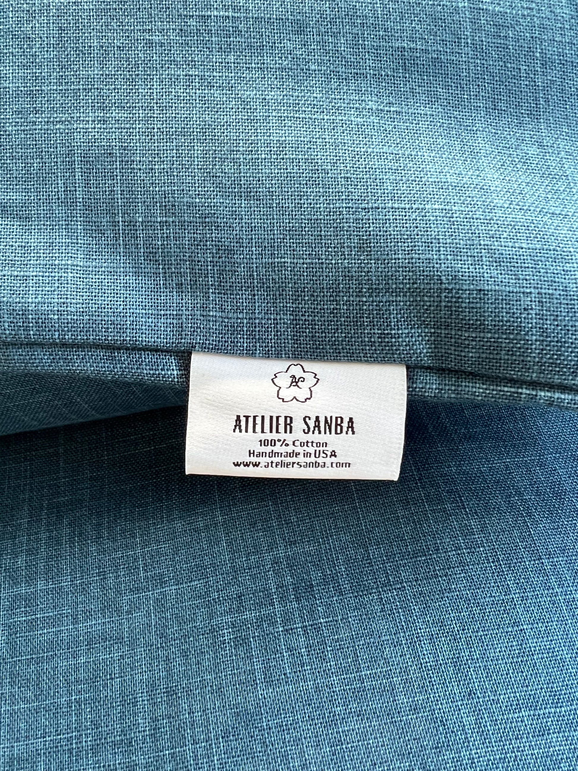 Our Custom Futon Cover is handmade from exquisite Japanese cotton. This cover is 100% Cotton and features a beautiful Mura Blue (uneven pattern-mura ito kurosu) fabric. It is designed to specifically fit our custom made futons. This cover features a YKK zipper for durability and completely encases your futon for protection. This cover is machine washable. Custom sizes available. Fabric imported from Japan. Handmade in New England.