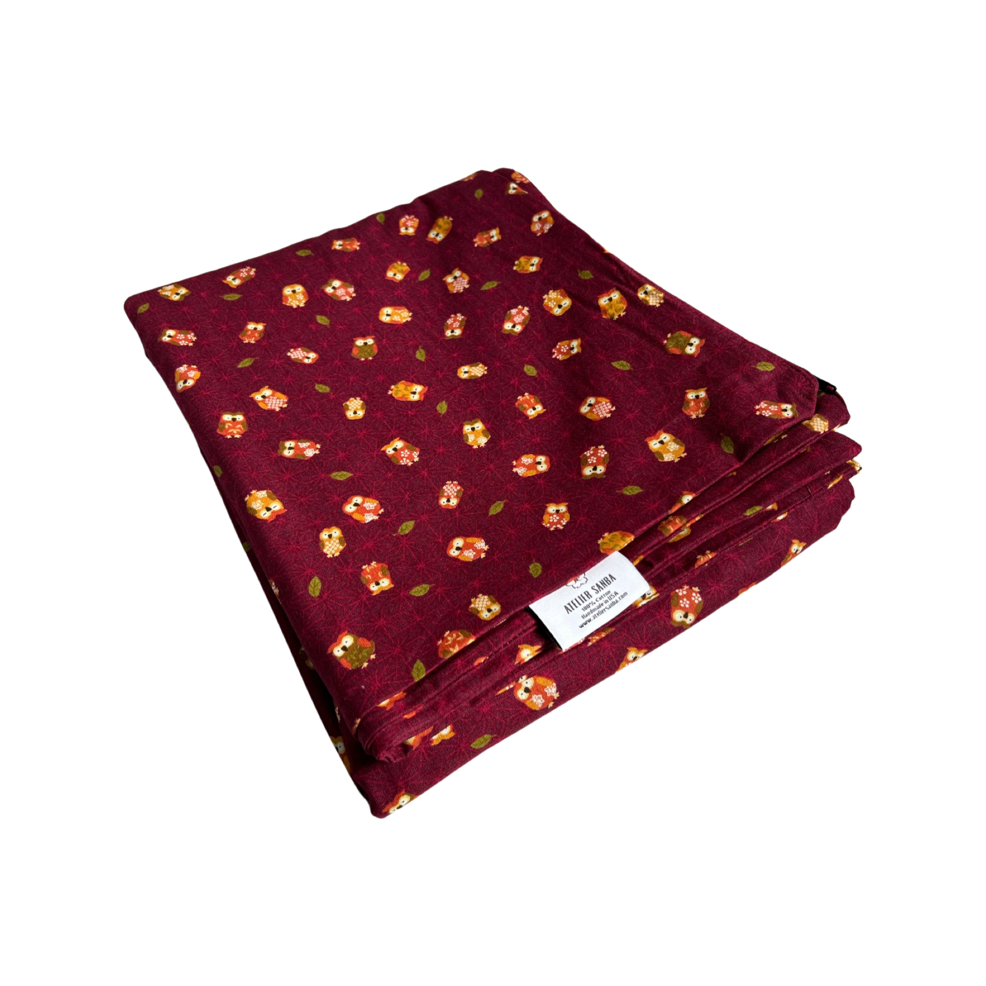 Burgundy Owl Japanese Cotton Futon Cover. Handmade Shiki Futon Cover.