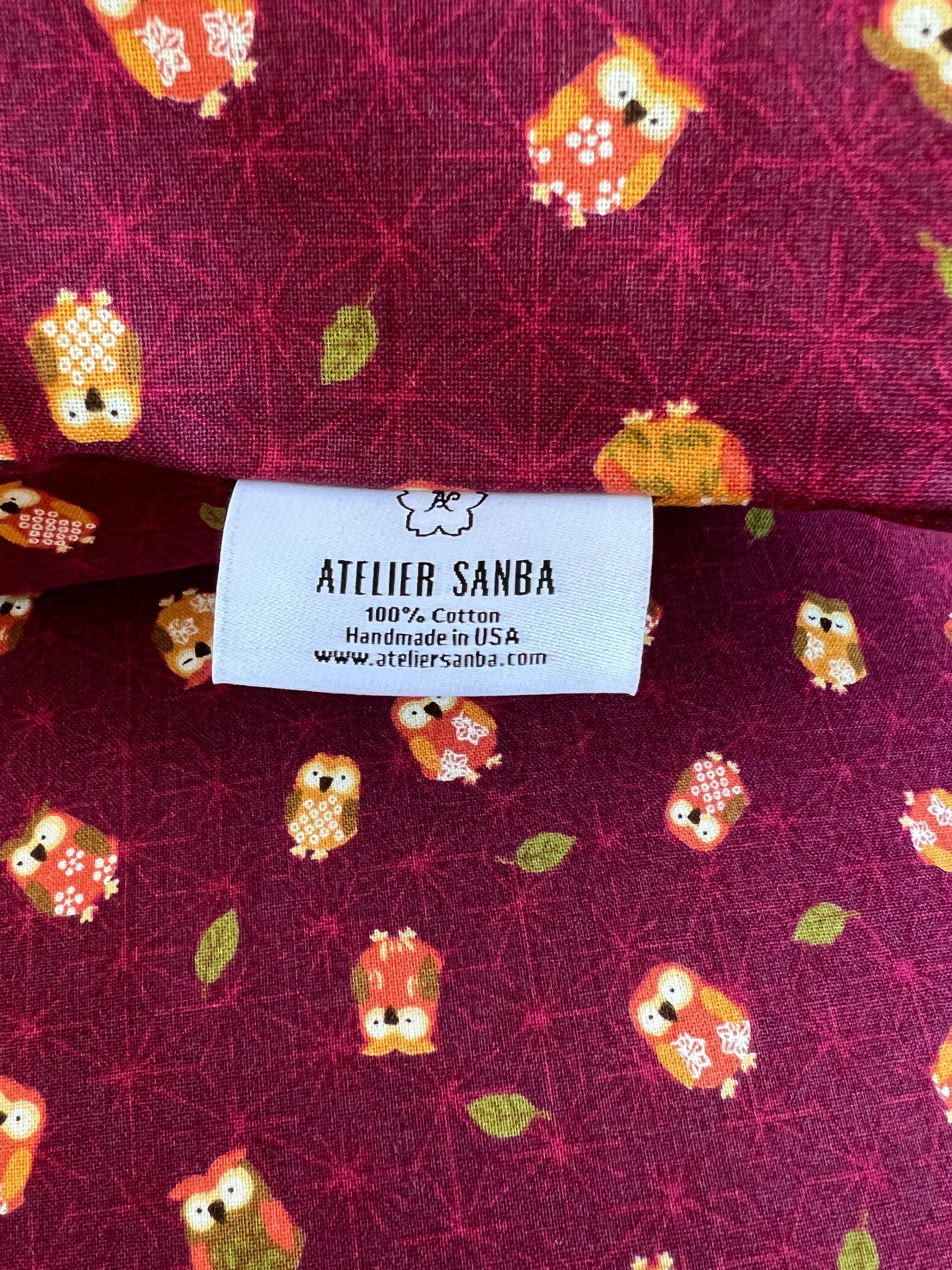 Our Custom Futon Cover is handmade from exquisite Japanese cotton. This cover is 100% Cotton and features a beautiful Burgundy Red Owl fabric. It is designed to specifically fit our custom made futons. This cover features a YKK zipper for durability and completely encases your futon for protection. This cover is machine washable. Custom sizes available. Fabric imported from Japan. Handmade in New England.